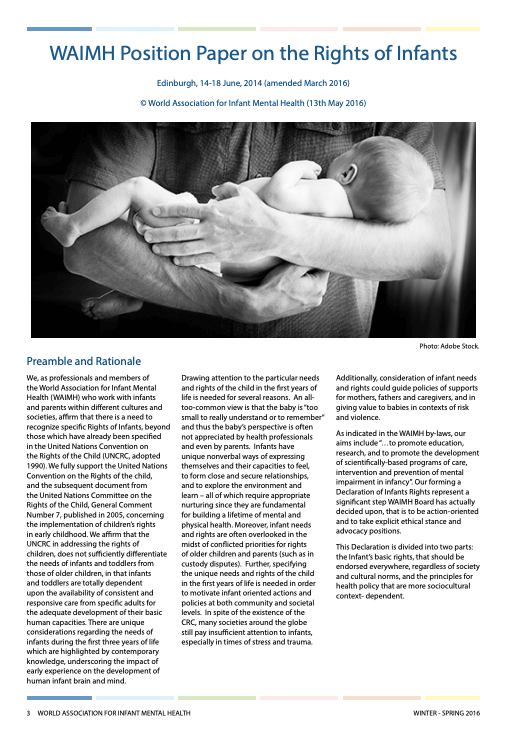 AAIMH, as an affiliate member of WAIMH, supports WAIMH's Position Paper on the Rights of Infants. The position paper is